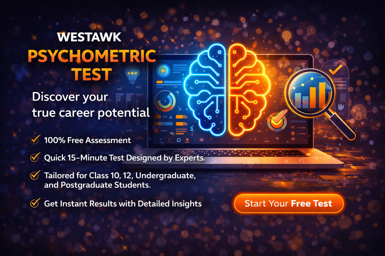 The Westawk Psychometric Test is a smart and reliable way to understand your strengths, interests, and ideal career direction. Designed by experts, this quick 15-minute assessment helps students from Class 10 to postgraduate level make informed career decisions. It evaluates your personality, skills, and preferences to suggest the most suitable career paths. The test is completely free and provides instant results with clear, actionable insights. With easy-to-understand reports, students can identify their true potential and choose the right academic or professional journey with confidence.